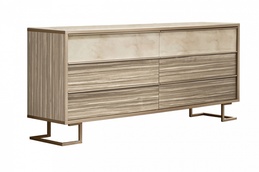 The bedside tables reflect the features and finishes of the dresser, but in a smaller format. In addition, each one of them features a drawer upholstered in velvet and the typical contrast between marble and wenge wood, enlivened by the satin-finished gilded metal handle.
